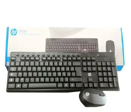 HP Wireless Combo CS700: L’ensemble HP Wireless Combo CS700 est composé d’un clavier et d’une souris sans fil au design agréable. Compact et pratique: le CS700 s’utilise aussi bien avec un PC de bureau qu’avec un ordinateur portable Wireless: Le mode sans fil 2,4 GHz à longue portée vous offre une connexion fiable jusqu’à 10 mètre Pratique: Vous pouvez utiliser la souris sans fil chez vous avec votre PC, ou en déplacement avec votre ordinateur portable language clavier: Français, AZERTY.
