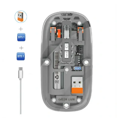 Souris Transparente 2 – 1600 DPI – 500mAh – Green Lion – GNTRAMOUS2BK/GNTRAMOUS2GN – Gris