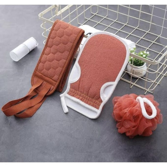 Beauté & Bien Être Gant Exfoliant + Laveuse De Dos + Éponge De Bain 3en 1 Marron