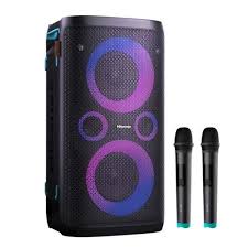 Haut-parleur sans fil avec 2 micros Hisense Party rocker one plus – 300W – 15h d’autonomie – Fonction de charge de téléphone par induction – Party rocker one plus