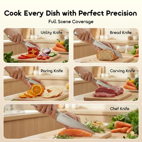 This thoughtfully selected set includes all the knives needed for daily cooking, removing the need to buy tools separately.