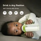 The 360° gravity ball straw moves with every tilt and turn, allowing your baby to drink comfortably in any position and effortlessly enjoy every last drop.