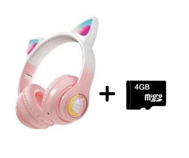Casque OLA Kitty – sans fil – Bluetooth 5.4 – mignon avec oreilles lumineuses et son stéréo87 – Carte mémoire offerte – Rose