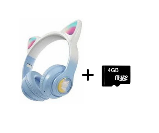 Casque OLA Kitty – sans fil – Bluetooth 5.4 – mignon avec oreilles lumineuses et son stéréo – Carte mémoire offerte – Bleu