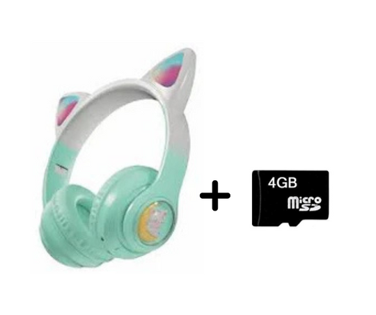 Casque OLA Kitty – sans fil – Bluetooth 5.4 – mignon avec oreilles lumineuses et son stéréo – Carte mémoire offerte – Vert