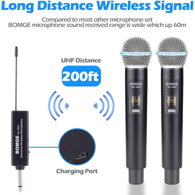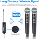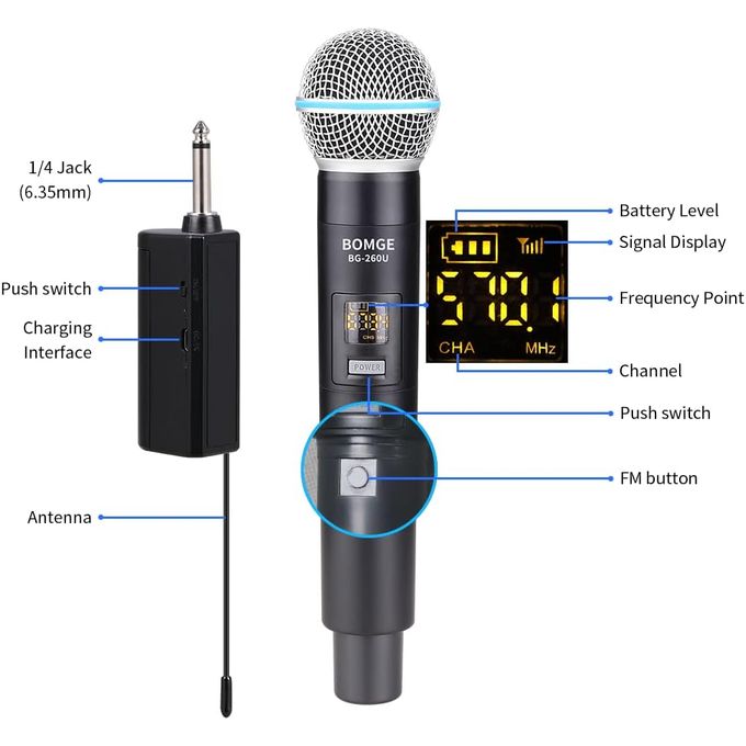 Liberté sans fil : la portée de fonctionnement de 200 pieds (ligne de vue) se déplace librement pendant les représentations, idéale pour les événements intérieurs et extérieurs tels que le karaoké familial, les églises, les mariages, les conférences et les petites représentations sur scène. Compatibilité : Super stabilité du signal, compatible avec les machines de karaoké, les haut-parleurs actifs, les amplificateurs de puissance, les mélangeurs et les interfaces audio. (Remarque : le système n'est pas compatible avec les téléphones mobiles, les ordinateurs et les tablettes.)Signal stable : allumez simplement le système et le récepteur synchronisera automatiquement la fréquence avec l'émetteur. Chaque microphone dispose de 15 canaux réglables, un total de 30 canaux réglables pour éliminer les interférences radio, jusqu'à 15 groupes peuvent être utilisés en même temps. Signal stable : allumez simplement le système et le récepteur synchronisera automatiquement la fréquence avec l'émetteur. Chaque microphone dispose de 15 canaux réglables, un total de 30 canaux réglables pour éliminer les interférences radio, jusqu'à 15 groupes peuvent être utilisés en même temps. Remarque : chaque microphone nécessite 2 piles AA (non incluses).