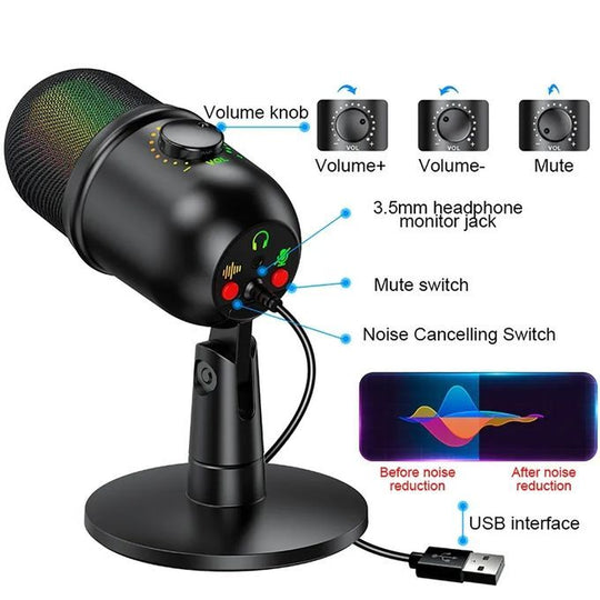 Microphone USB Pour Pc - Streaming, musique, Podcast - Support Ajustable