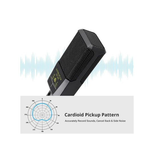 Prix régulier CFA18,000Traits:Corps en métal robuste : cadre de microphone en aluminium haute résistance, résistant à l'usure et anticorrosion, protège tout à l'intérieur du micro et dure.Motif de ramassage cardioïde : le motif cardioïde permet une capture précise... -