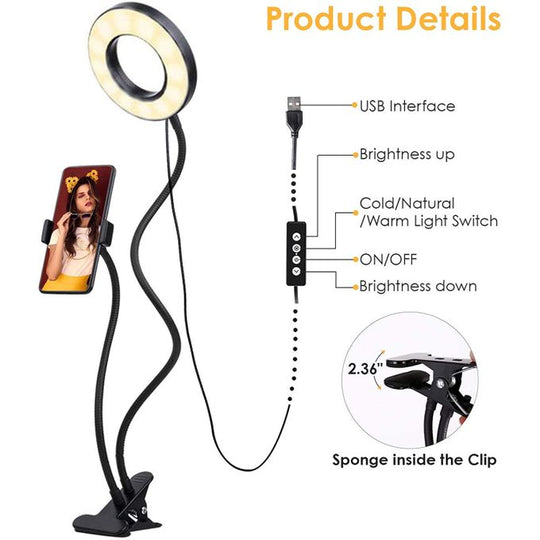 Ring Fill Light Anneau Lumineux LED 12 Pouces ,intensité Réglable Avec Clip; 26 Cm Diamètre