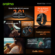 oraimo Watch 5 Lite Montre intelligente IP68 HD 2,01 pouces