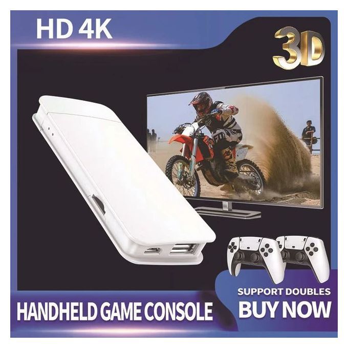 Game Stick, 4K, 64G, jeux classiques, 20000 + jeux, 2.4G, double manette pour PS1, GBA, cadeau garçonDescription Nom】: Bâton de jeu 3D【Modèle 】: M15【CPU】: Duad-noyau Cortex-A7 1.0 GHZ【RAM】Mémoire: DDRIII 256M【Système】Système Open Source Emuelec4.3, prise en charge de l'extension de carte TF, Max 128 Go, prise en charge des jeux au format apparenté, prise en charge de jeux 3D plus volumineux.【Jeux 】: Plus de 20000 jeux intégrés avec carte TF de 64 Go【Fonction】Avec fonction de recherche, fonction de collecte, fonction de sauvegarde de la progression du jeu【Prise en charge de la sortie HD 4K HD 】: Sortie 60FPS Max, sortie HD 2.1D 1280*720 résolutions【Contrôleur sans fil】: La manette sans fil 2.4G prend en charge 1-2 joueurs, se débarrasse de la limitation du câble et joue librement【 Prise en charge de plus de 40 simulateurs】: Prise en charge PSP,PS1,N64,CP1,CP2,CP3,Neogeo,GBX,MAME.FC.FCE,SFC,GB.GBA.GBC.MDNGPC,MEGADRIVE,GAMEGEAR,SEGAGENESIS,SG-1000 et autres simulateurs.