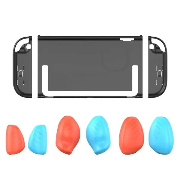 Étui de protection et poignée pour la Nintendo Switch 2 – Année 2025 – Coque noir et poigné rouge/bleu